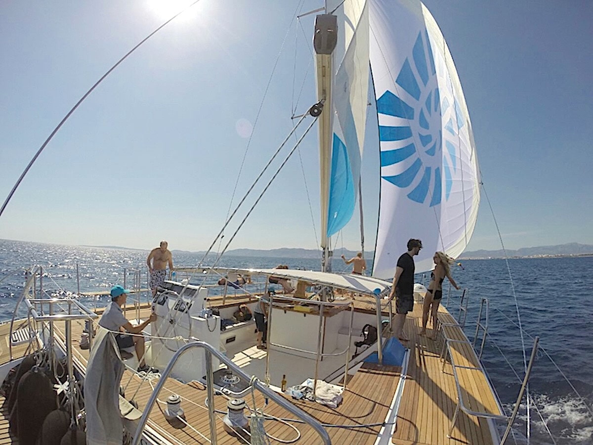Das Teakdeck, sowie der elegante perlgrau Rumpf und die individuellen Segel bieten einen perfekten Rahmen für Ihren Segel-Tag auf dem Meer. Das Deck ist in zwei Ebenen unterteilt; Das Oberdeck bietet einen komfortablen Sitzbereich, der zum Sonnenbaden, mit elegante und komfortable Kissen einlädt.