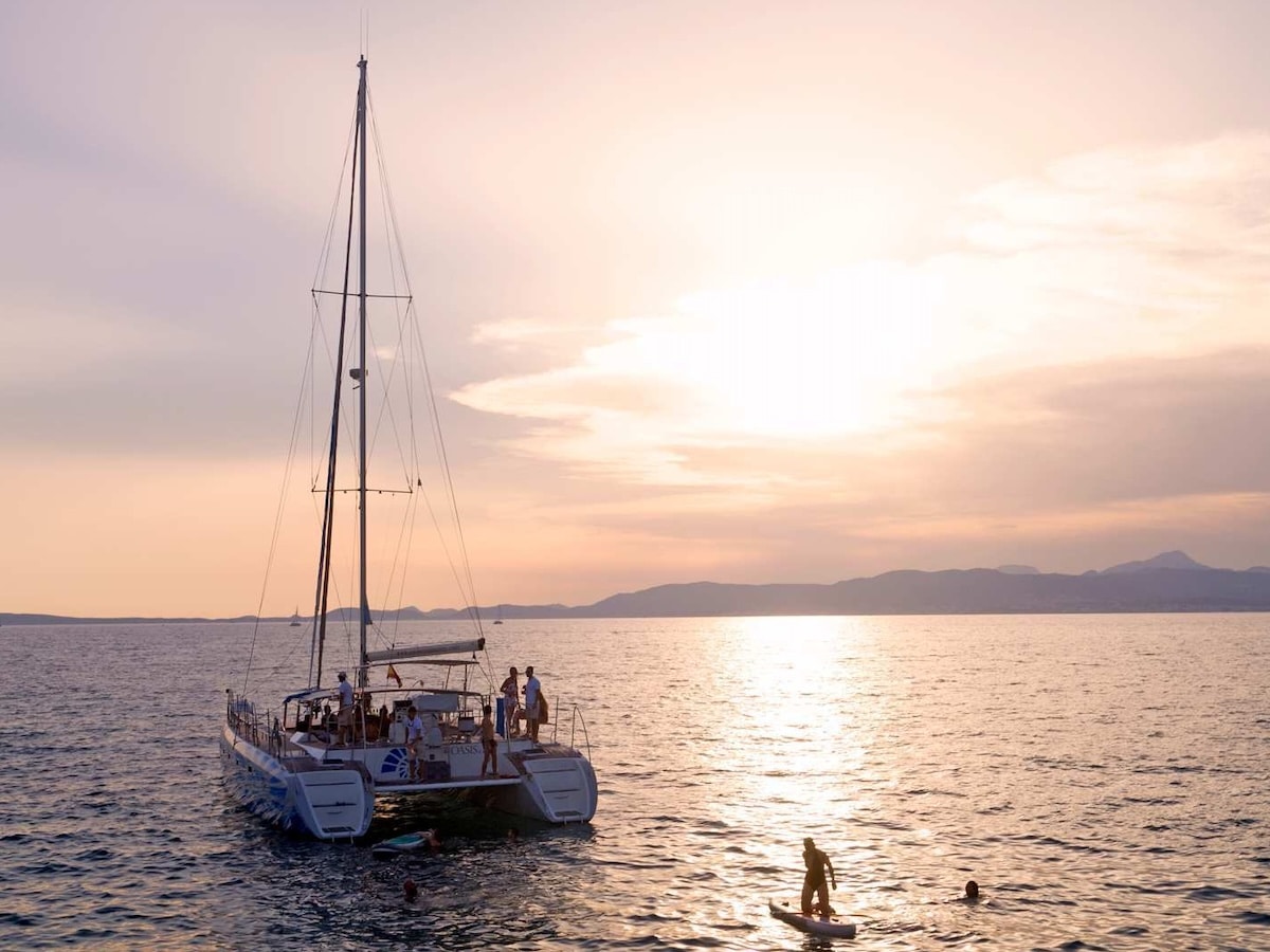 Ein komplett neu aufbereiteter Katamaran, ideal für Ihr Ausflug als Incentive, Familien-Feier und sonstige Private Feier für bis zu 45 Gäste. Der Katamaran (15,23m x 7,43m) bietet genügend Platz um der Tag auf dem Meer zu genießen.